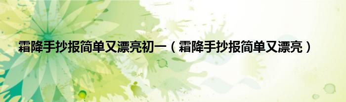 大家好,霜降手抄报简单又漂亮初一,霜降手抄报简单又漂亮很多人还不知道,现在让我们一起来看看吧!