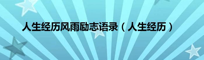 大家好,小问来为大家解答以上问题。人生经历风雨励志语录,人生经历这个很多人还不知道,现在让我们一起来看看吧!